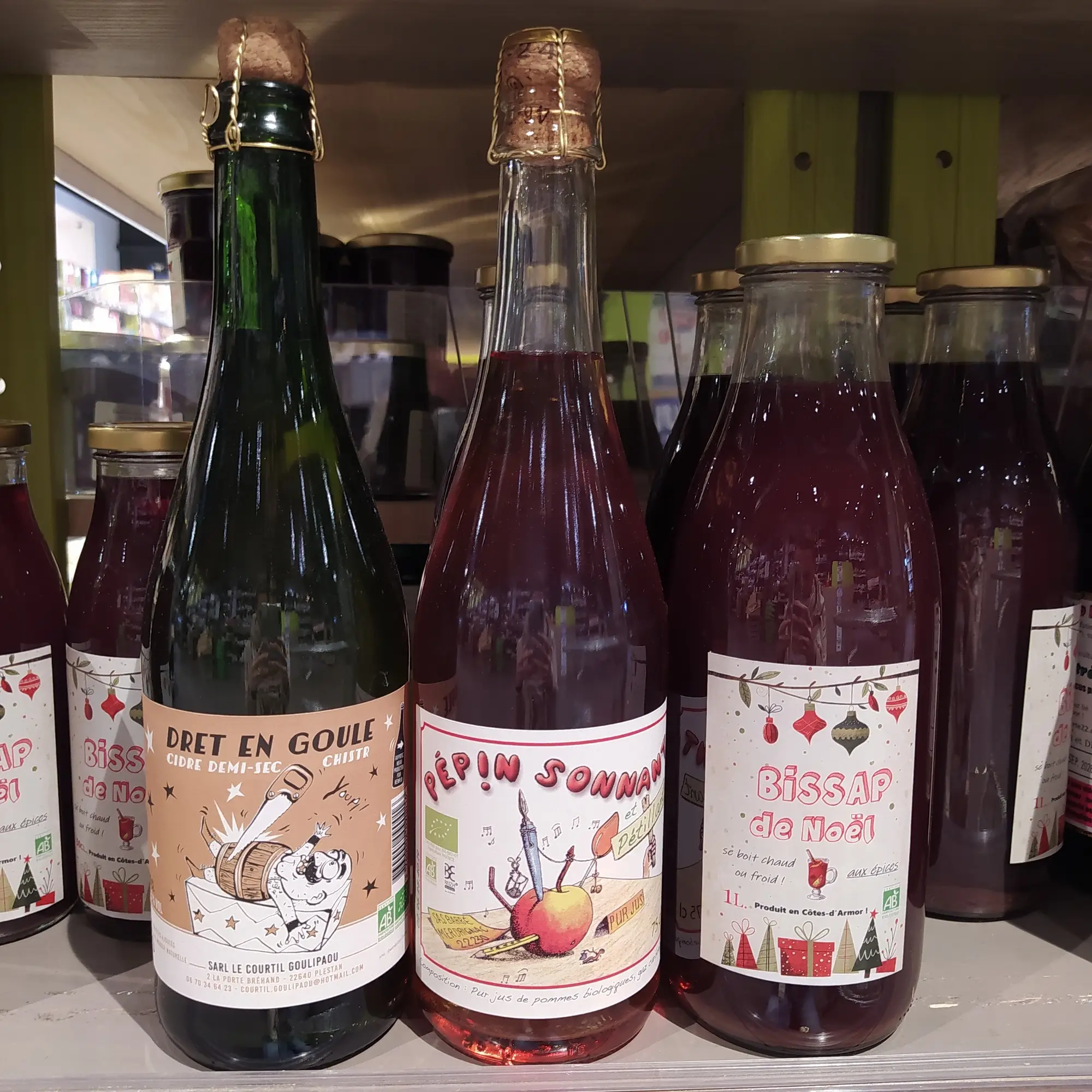 Laissez-vous tenter par le Bissap de Noël (jus d'hibiscus), le jus de pomme pétillant ou encore les cidres locaux.
